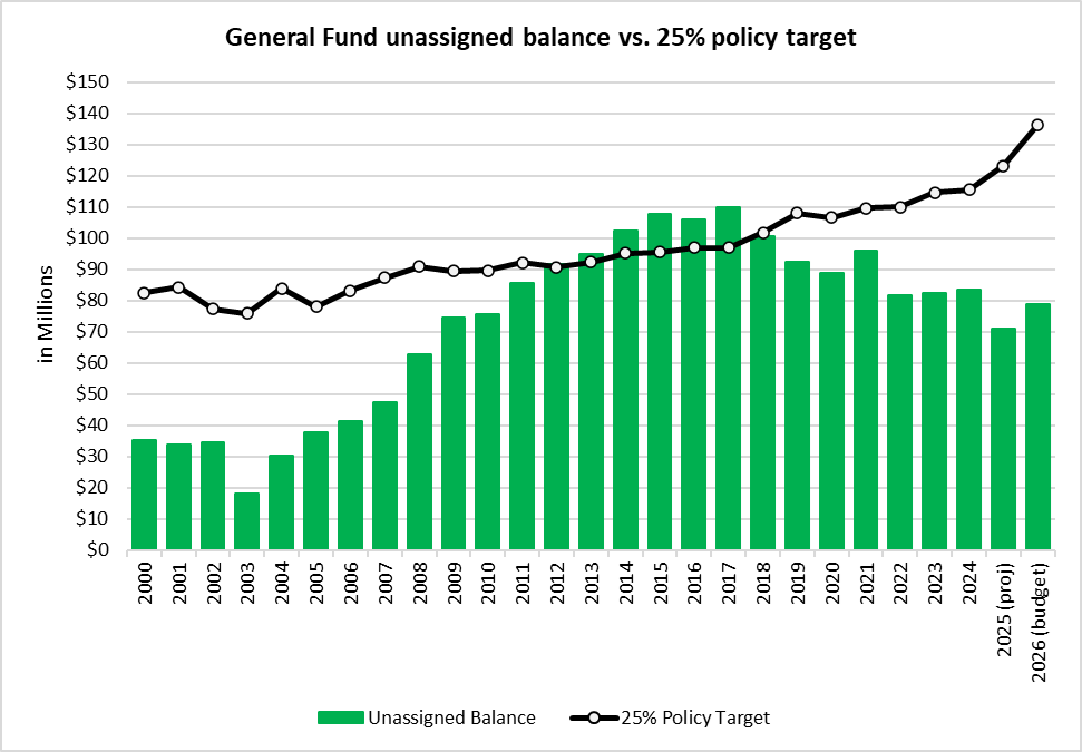 By policy, Shelby County is supposed to keep 25% of its tax collections in the general fund on reserve. Since 2000, the county has only met that target a handful of times. The gap is what creates a cashflow crunch, such as the one in November 2025.